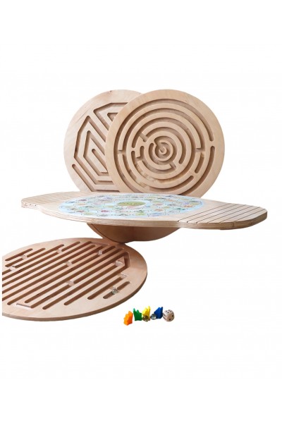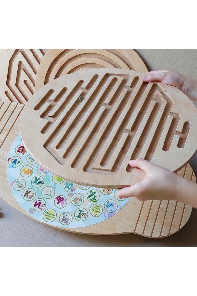 Балансир з ТРЬОМА змінними лабіринтами для тренування балансу та координації ніг та рук та грою-ходилкою з алфавітом та завданнями!!!