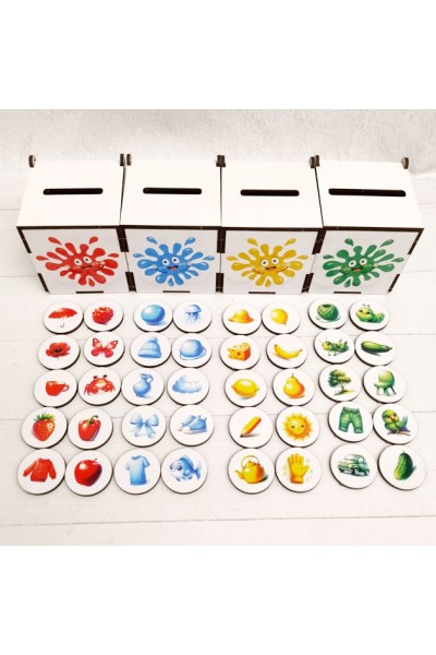 Розміри боксів 6 х 6 х 6 см 4 бокси + 40 елементів Матеріал ХДФ