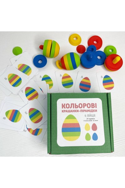 Розвивальний набір «Кольорові Яйця-Пірамідки» –що захоплює спосіб навчання малюка.За допомогою гри малюк розвине дрібну моторику, просторове мислення,логіку, посидючість, а також вивчить назви кольорів та поняття великий-маленький. Прочитайте логічні
