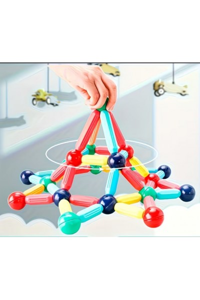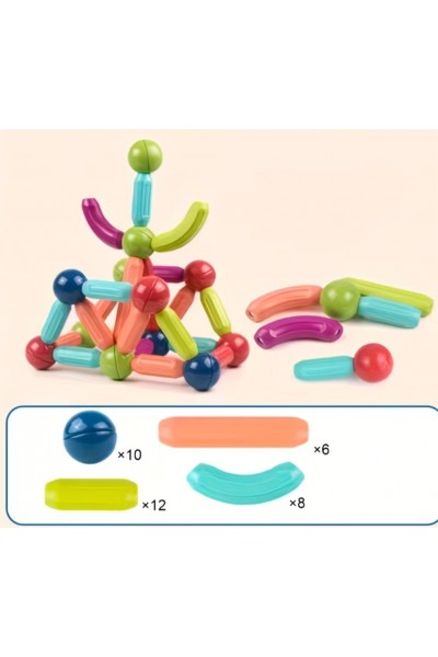 Magnetic Sticks - магнітний конструктор для найменших. Він створений з урахуванням рекомендацій дитячих психологів та педагогів. Магнітний конструктор включається 36 різнокольорових елементів різної форми. Всередині корпусу з міцного пластику заховані та запаяні магніти, що забезпечує надійність та безпеку.