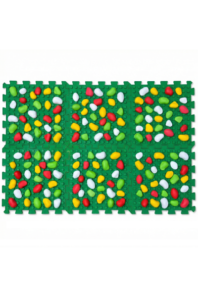 Масажний килимок складається з 6 пазлів + 6 комплектів модулів "Камінці" (168 шт).