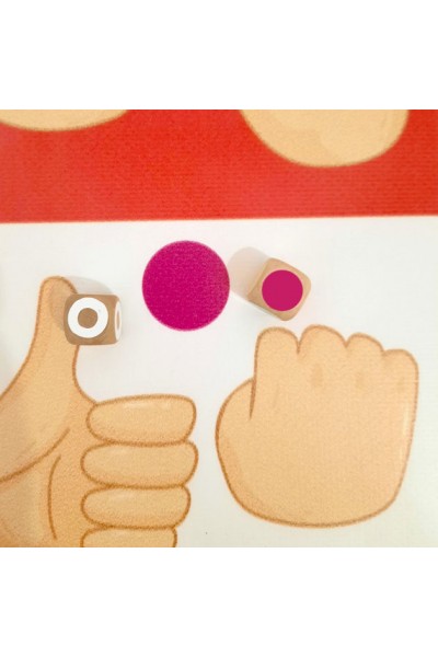 Кидаємо кубики та за двома ознаками, колір та біле всередині, біле зовні,знаходимо відповідний сектор та виконуємо положення рук