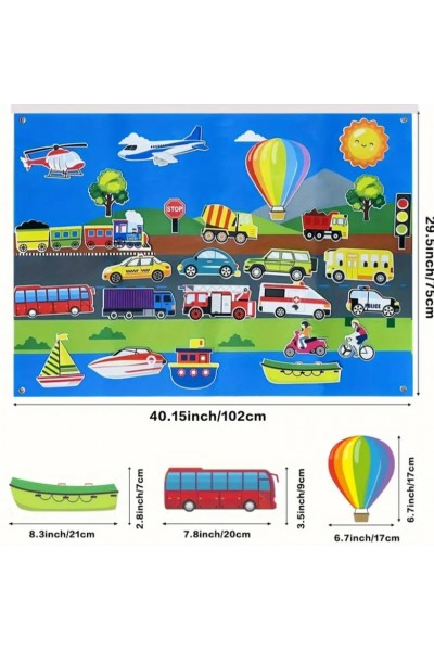 Розвиваюча фетрова гра Транспорт- це відмінний і цікавий набір для раннього розвитку дитини.